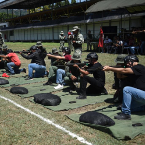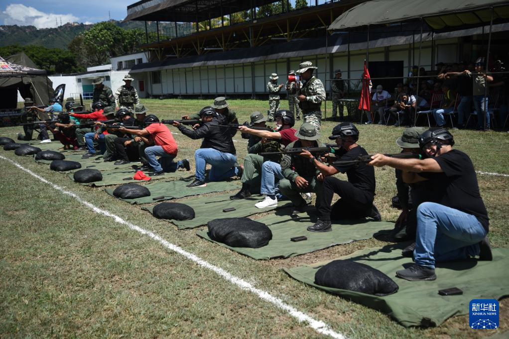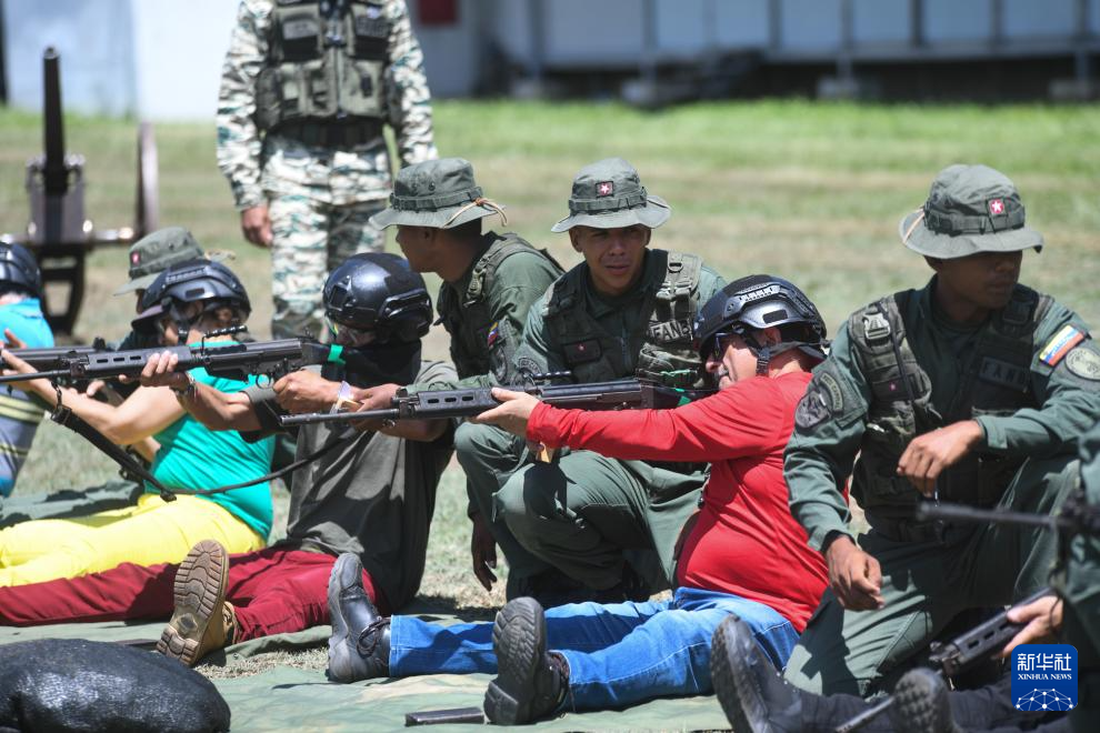9月13日,委内瑞拉民兵在位于首都加拉加斯的蒂乌纳堡陆军基地进行射击训练。