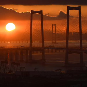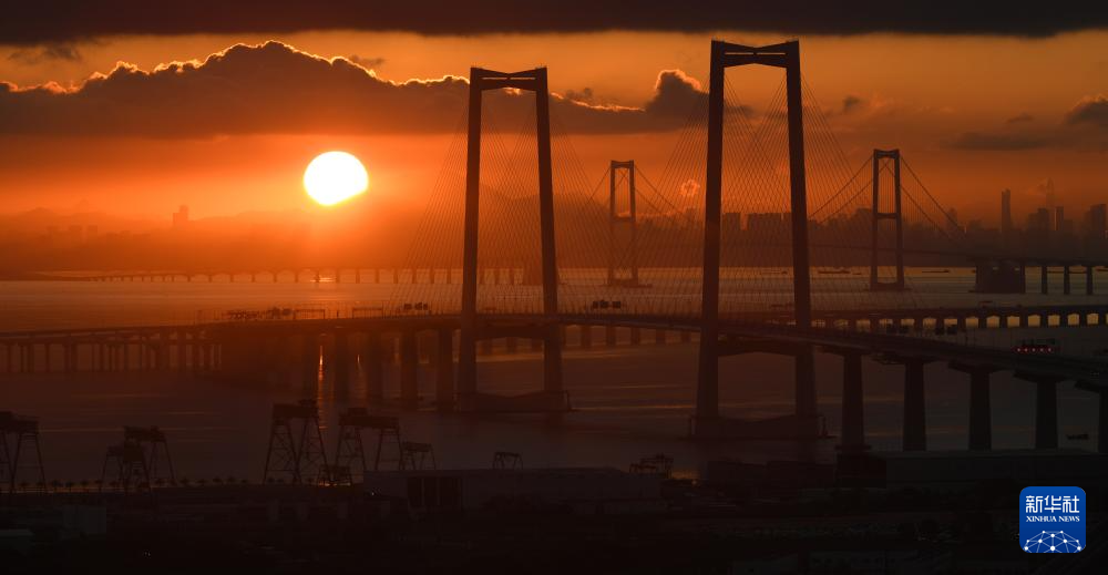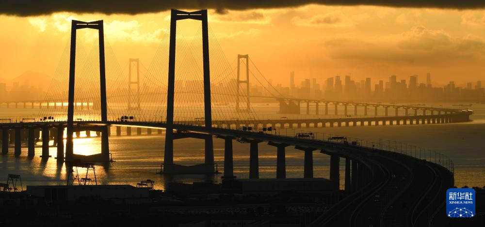 9月14日拍摄的沐浴在晨曦之中的深中通道。