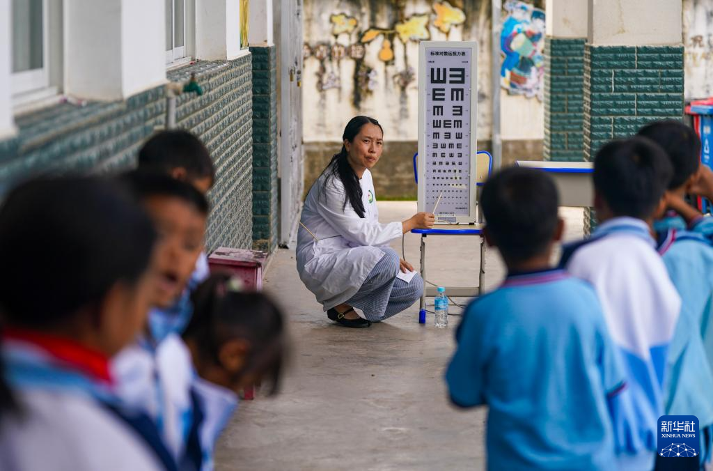 9月15日,孟连县公信乡卫生院工作人员在戈的小学为学生们进行视力筛查。