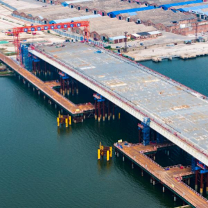 当日,由中铁十八局承建的天津市滨海新区西中环快速路跨海河桥最后一节钢箱梁稳稳落到设计位置,标志着重达12500吨的主桥钢箱梁顶推就位,工程建设取得重要突破。