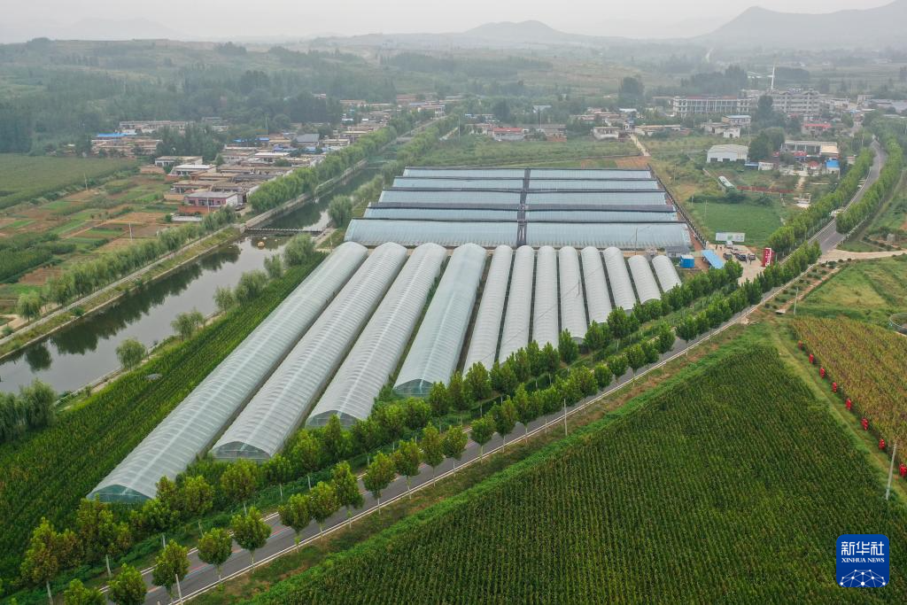 这是9月16日拍摄的肥城市河兴农业专业合作社葡萄草莓种植基地(无人机照片)。2024年,这个合作社分红50万元,实现群众集体双增收。