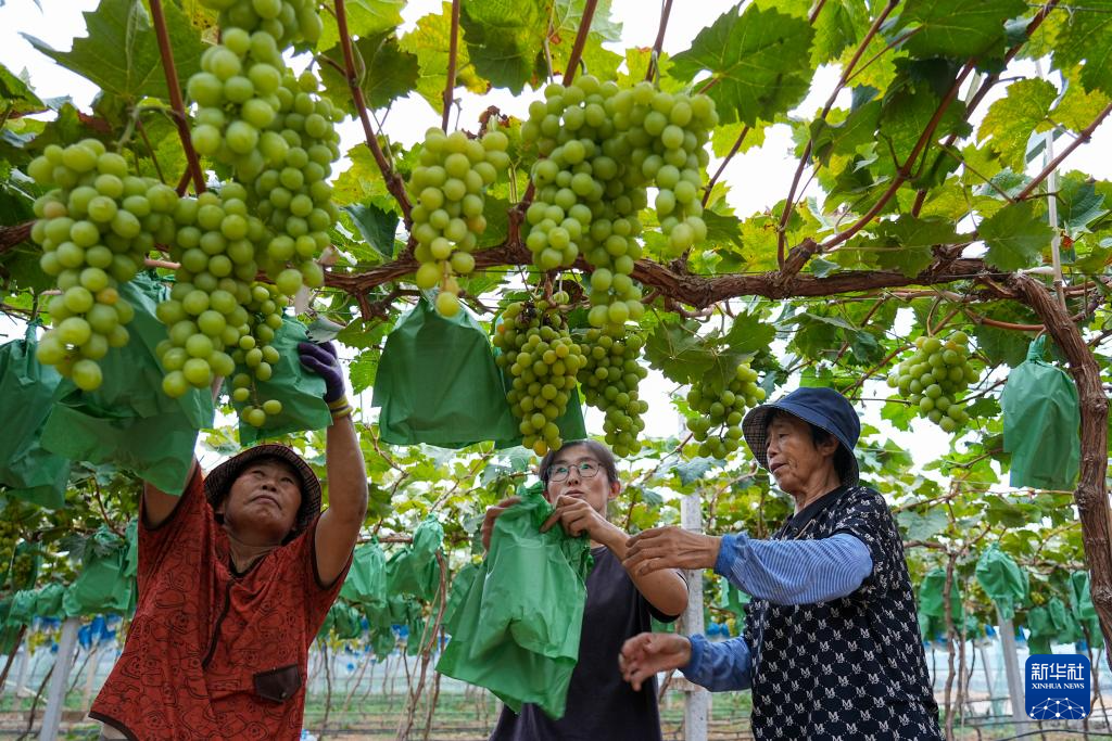 9月16日,村民在肥城市老城街道河口村的肥城市河兴农业专业合作社葡萄草莓种植基地收获葡萄。
