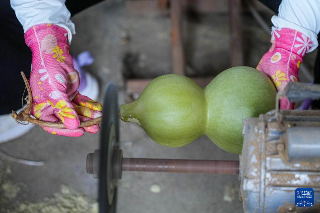 9月16日,村民在肥城市老城街道张家花峪村加工观赏葫芦。