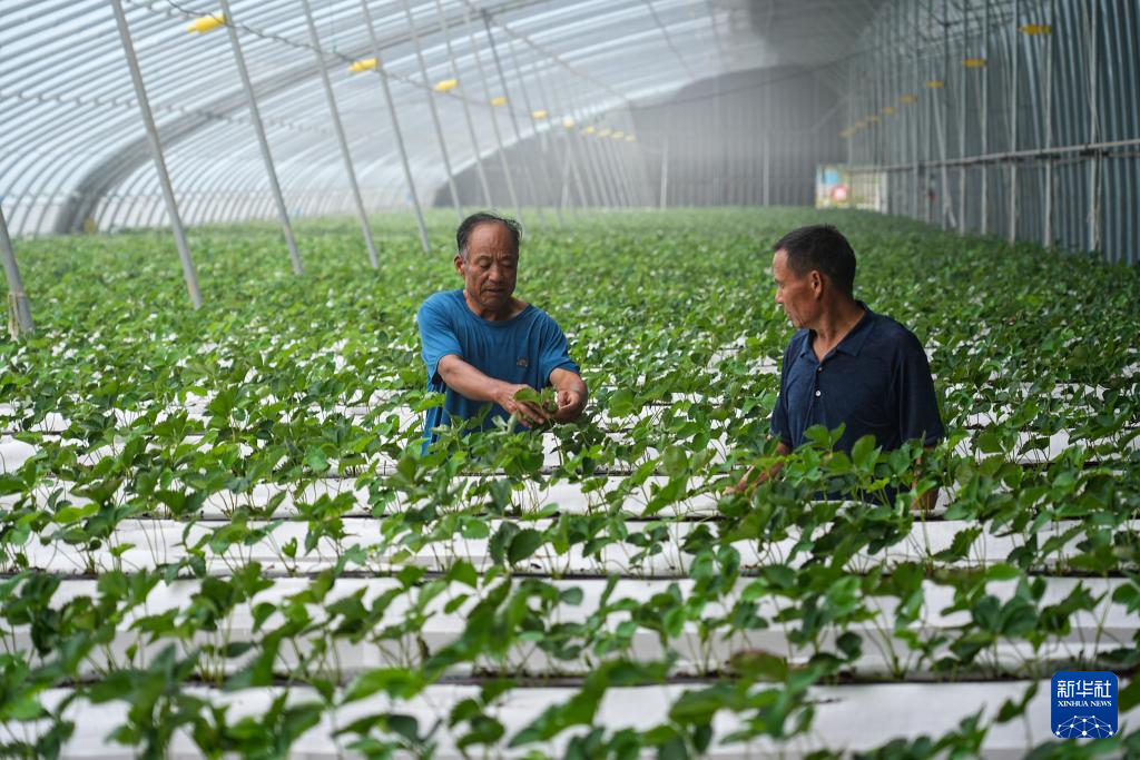9月16日,村民在肥城市老城街道河口村的肥城市河兴农业专业合作社葡萄草莓种植基地培育草莓秧苗。