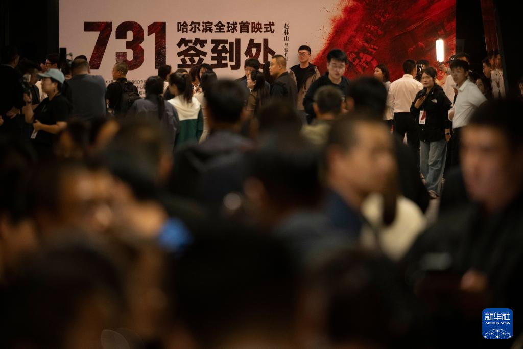 9月17日,在哈尔滨市哈东万达影城《731》全球首映仪式现场,观众准备入场。