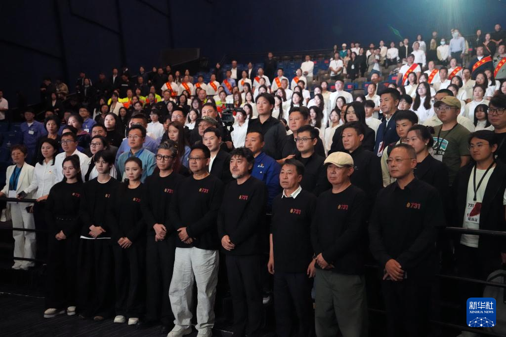 9月17日,在哈尔滨市哈东万达影城,主创人员出席《731》全球首映仪式。