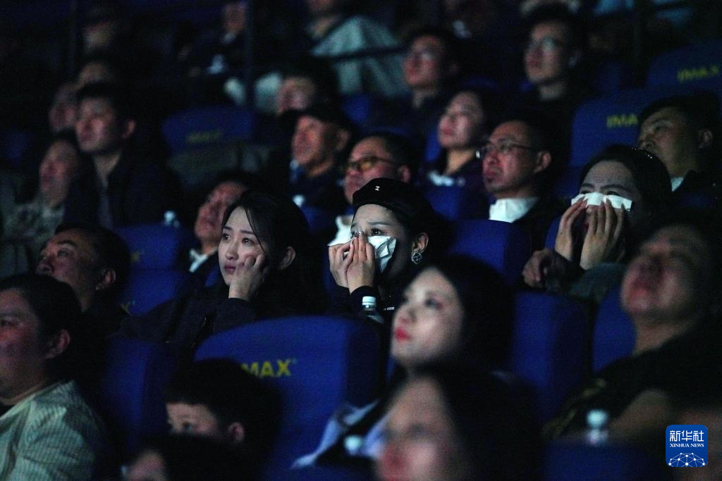 9月17日,在哈尔滨市哈东万达影城,受害者家属在观看电影《731》。