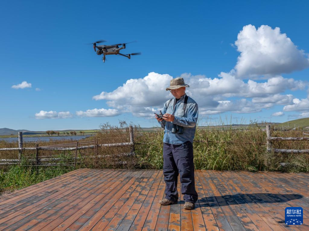 9月16日,宝金财使用无人机对额尔古纳湿地进行日常巡护。