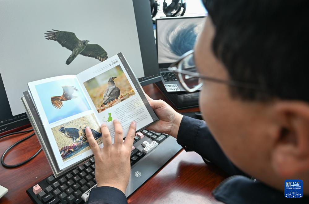 9月16日,宝金财在额尔古纳湿地自然保护区管理局核对拍摄到的凤头蜂鹰。