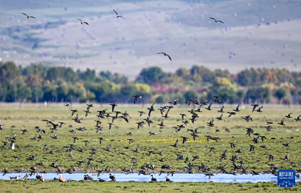 夕阳西下,宝金财结束了一天的工作。笔记本上密密麻麻记录着十几种鸟类、一百多个个体数据。收拾装备时,他突然指向天空:“快看,灰鹤归巢了。”鹤鸣声中,宝金财的眼中闪耀着清澈的光芒。