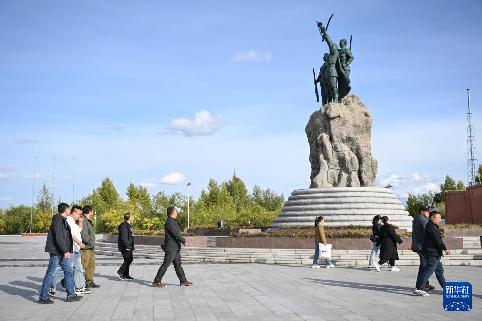 9月18日,人们在内蒙古呼伦贝尔市海拉尔区世界反法西斯战争海拉尔纪念园参观。