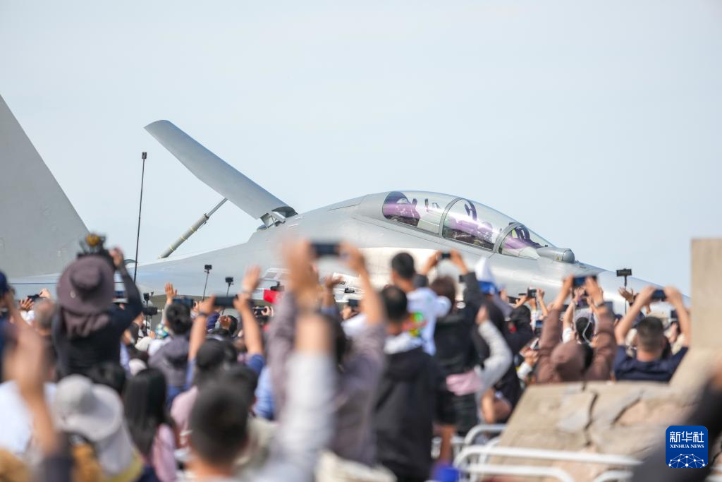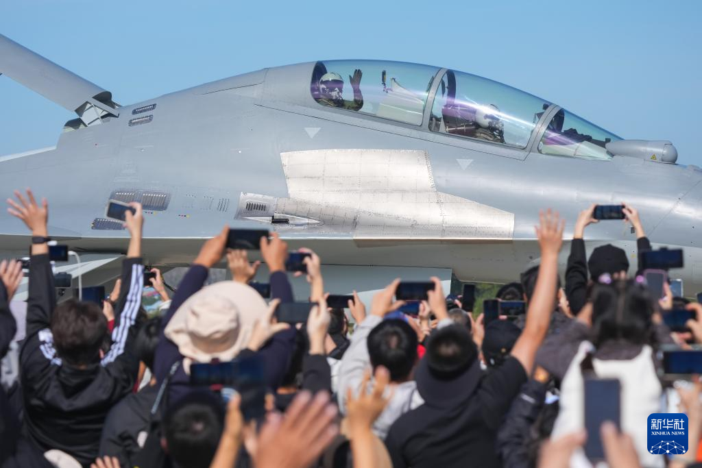 9月19日,歼-16飞行员在完成表演后向观众挥手致意。