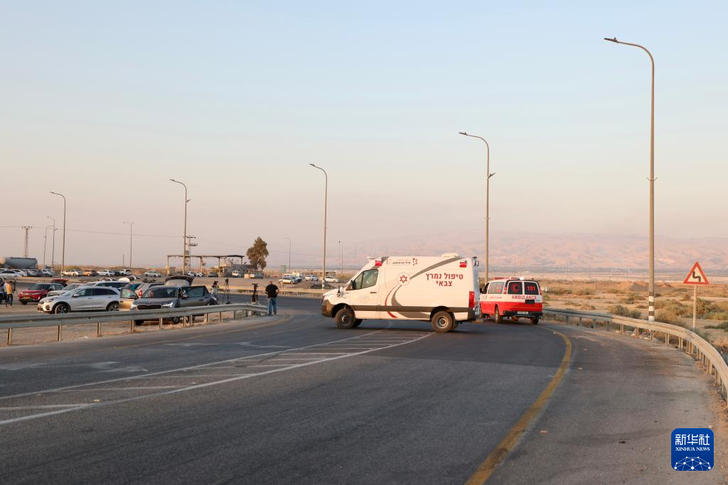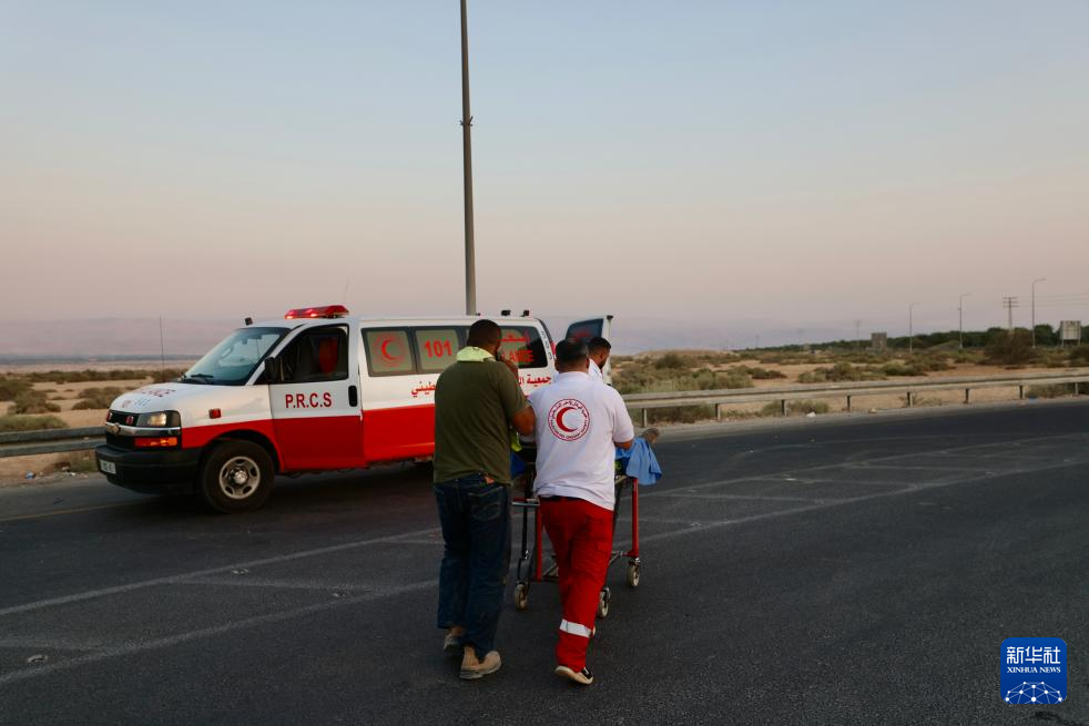 9月18日,急救人员在约旦河西岸地区与约旦交界处艾伦比桥陆路口岸附近的袭击现场开展工作。