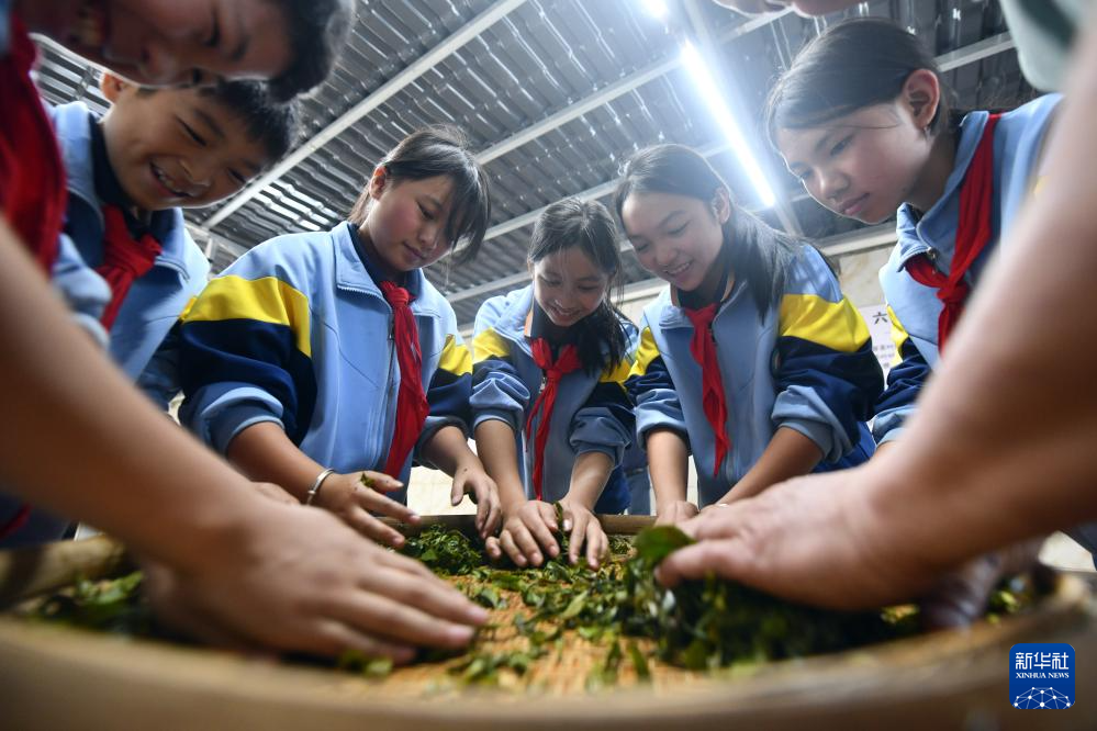 在广西梧州市苍梧县六堡镇塘平小学,学生们在学习制作六堡茶(2024年12月3日摄)。
