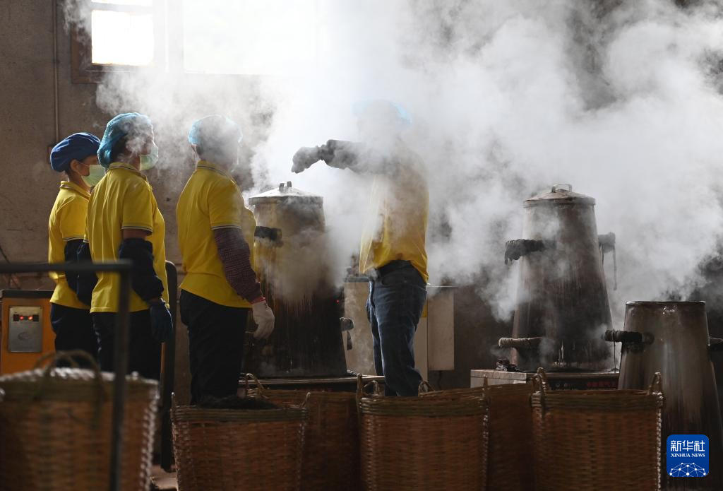 在广西梧州市中茗茶业有限公司,工人在制作六堡茶(2024年3月26日摄)。