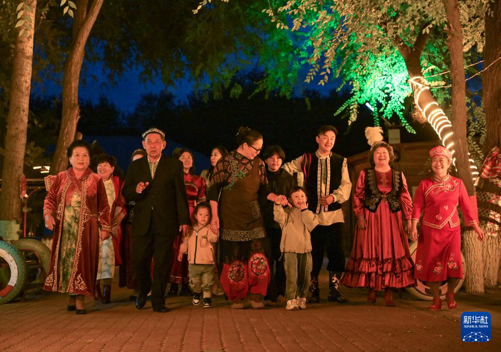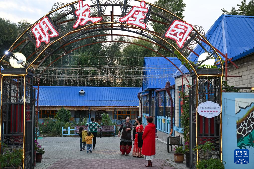 9月17日,马秀花和多民族亲朋一起走在“朋友庄园”。