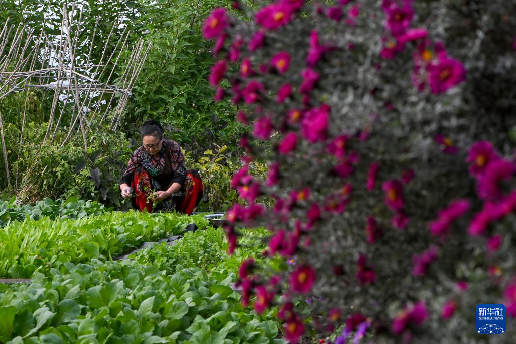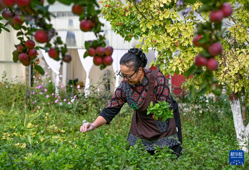 9月17日,马秀花在菜园里采摘薄荷,用于制作薄荷茶。