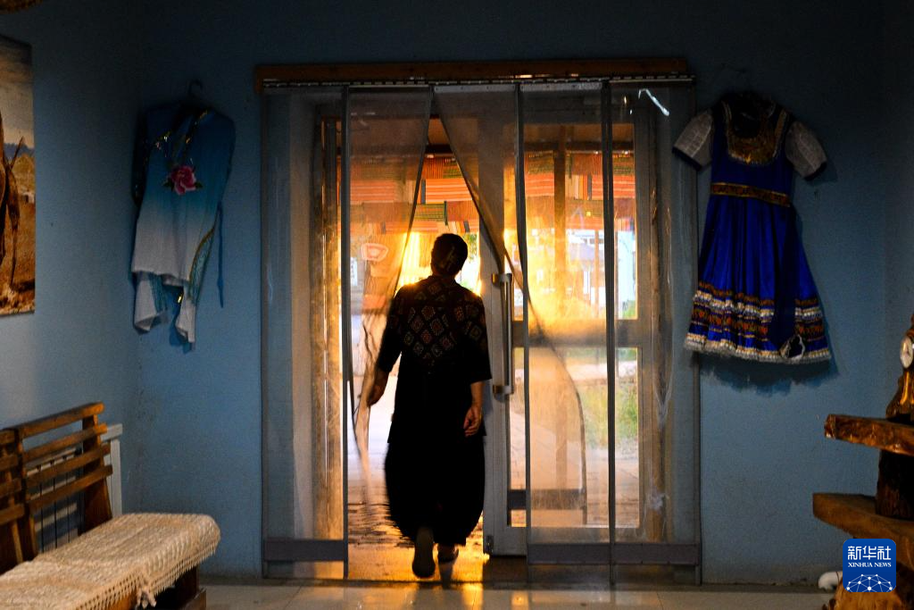 9月17日,哈萨克族客人库尔加娜在院中跳舞。