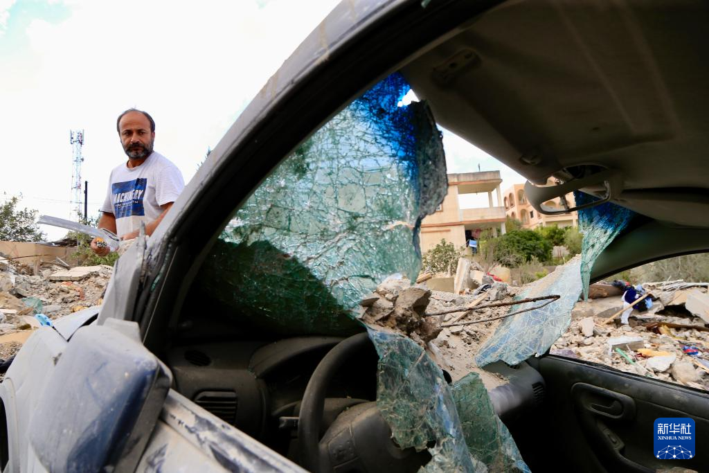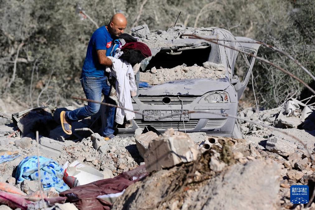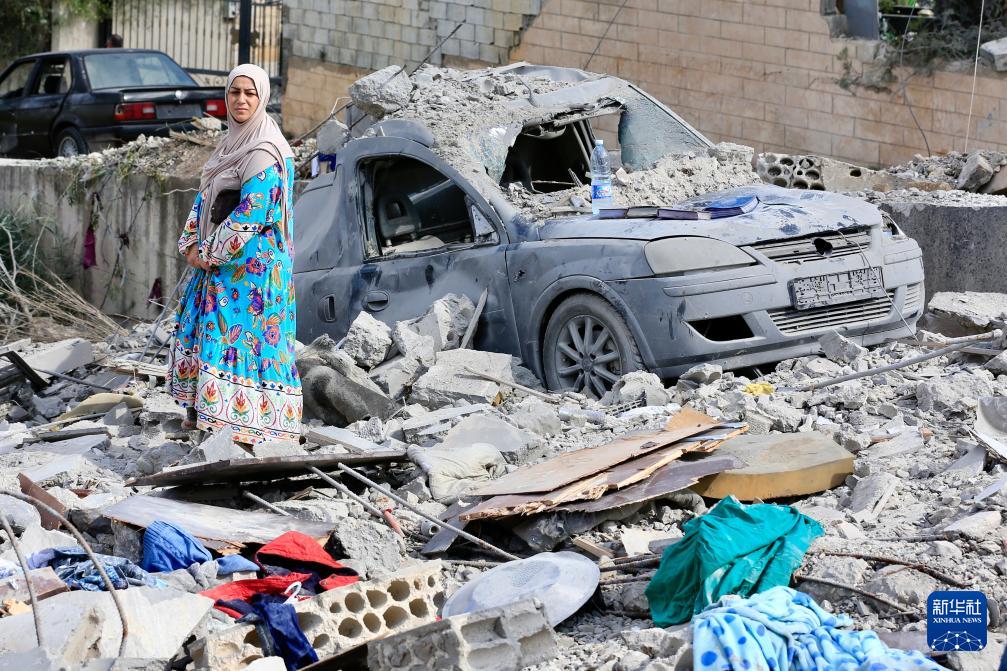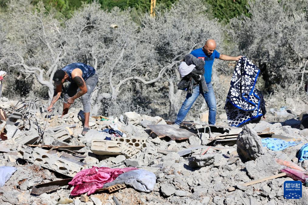 9月19日,在黎巴嫩南部布尔杰·卡拉维耶,居民查看以色列空袭摧毁的房屋废墟。
