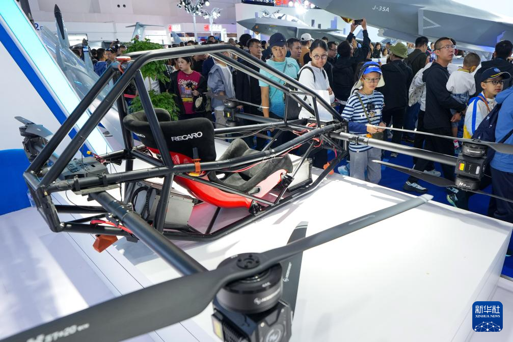 9月20日,参观者在现场参观载人多旋翼飞行器。