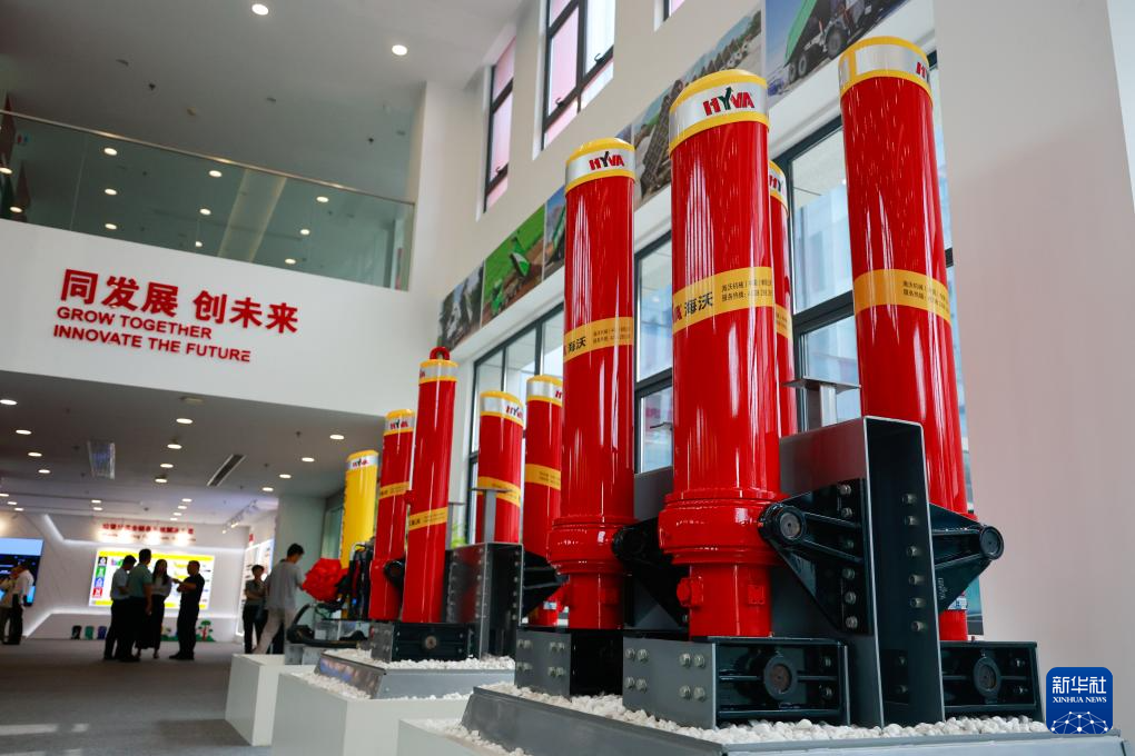 这是9月19日在江苏扬州中欧(扬州)智能制造产业园内的海沃机械(中国)有限公司拍摄的油缸成品。