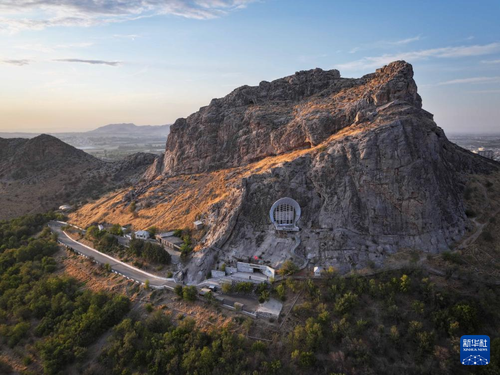 这是9月19日在吉尔吉斯斯坦奥什拍摄的苏莱曼山(无人机照片)。