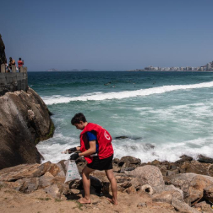 9月20日,在巴西里约热内卢,志愿者将捡拾的垃圾集中放置。