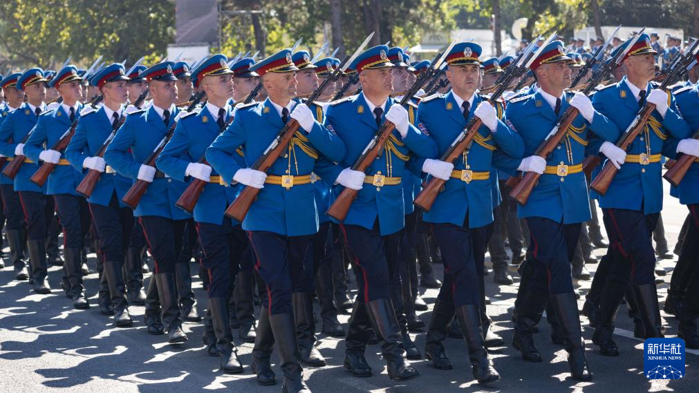 9月20日,在塞尔维亚首都贝尔格莱德,军人接受检阅。