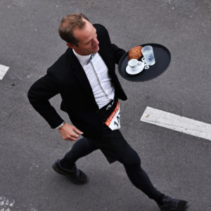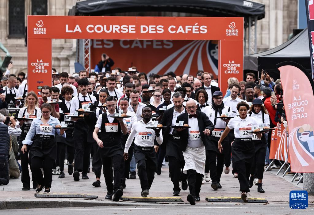 当日,法国首都巴黎举行具有百年历史的服务员赛跑活动。数百名穿着制服的男女服务员手托餐盘,餐盘内放着羊角面包、一个空咖啡杯和一杯水,从巴黎市政厅出发,沿环线跑完4公里的赛程。巴黎服务员赛跑最早始于1914年。今年还增加了普通民众赛跑环节。