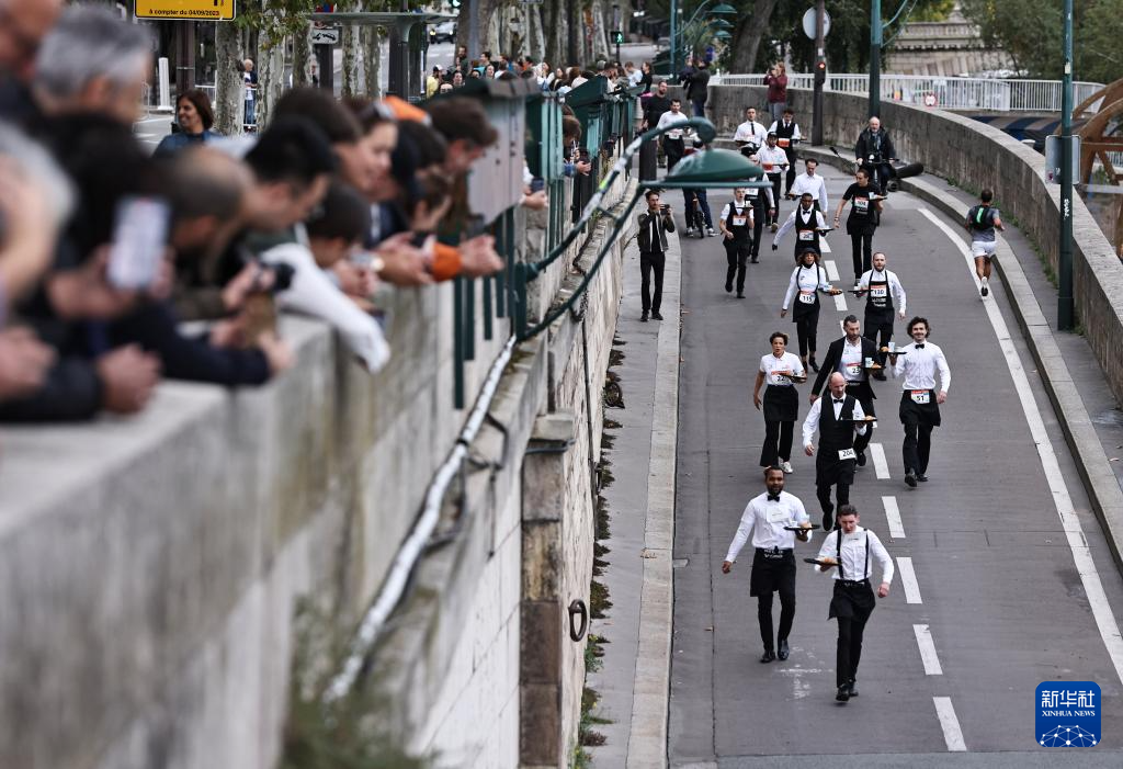9月21日,参赛者在法国巴黎参加服务员赛跑。