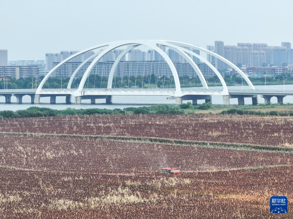 近日,江苏农垦江心沙农场位于常州金坛长荡湖和钱资湖畔外拓基地的8000余亩高粱陆续成熟,迎来采收季。成片的高粱映红田野,游人在安全地带打卡拍照,远处收割机来回穿梭,呈现出生动喜人的丰收图景。据介绍,该基地位于金坛“陌上花开”生态环境整治项目地段内,经过多年努力,“农业+旅游”现代都市近郊农业公园雏形初现。