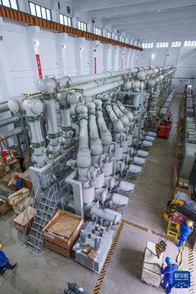 9月23日拍摄的浙江天台抽水蓄能电站内完成安装调试的开关站GIS室。