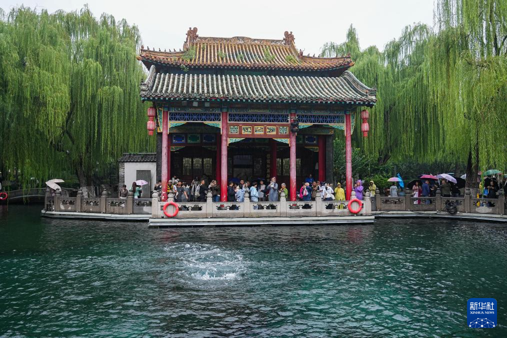 当日是秋分节气,受连日降雨影响,山东省济南市趵突泉泉水喷涌势头强劲,再现“趵突腾空”景象。