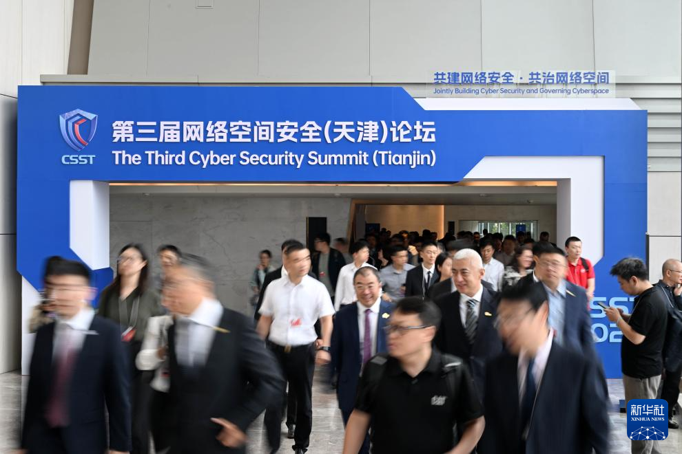 9月23日,嘉宾走出第三届网络空间安全(天津)论坛主会场。