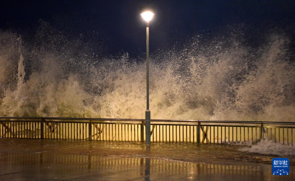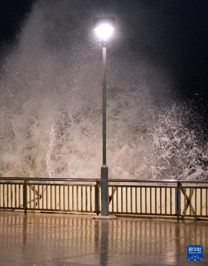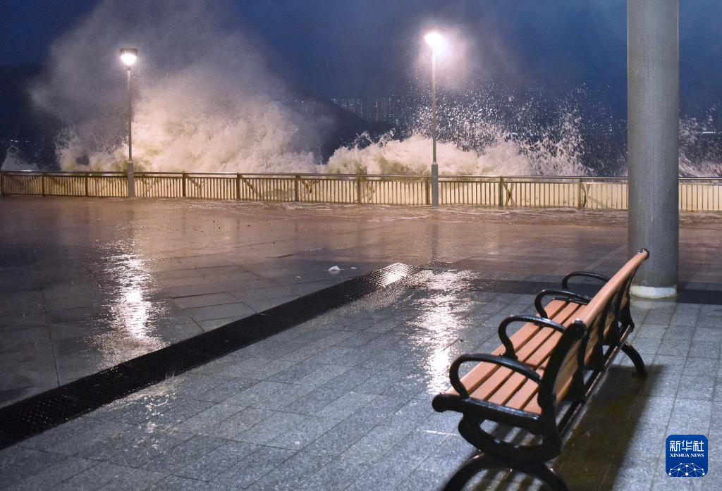 9月23日,海浪冲击香港柴湾杏花邨海岸。