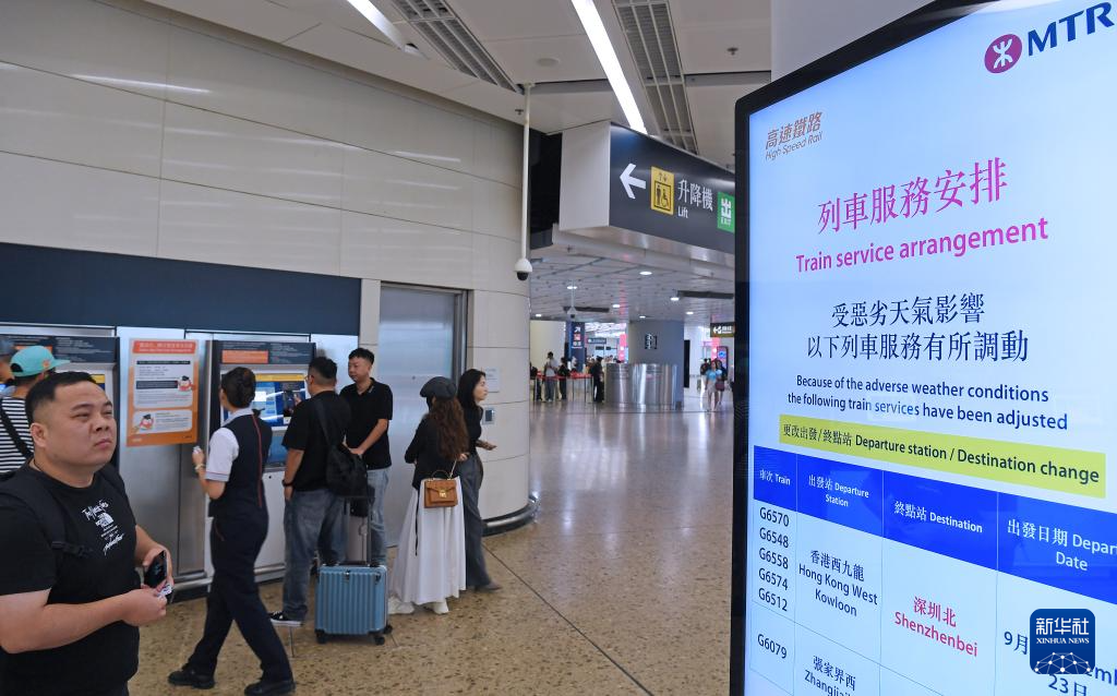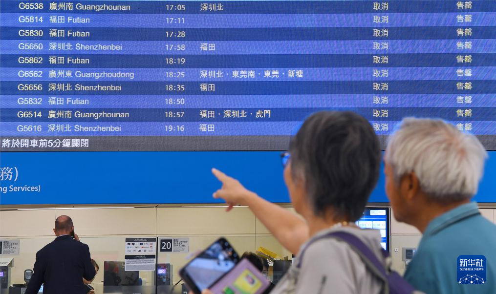 因台风“桦加沙”逼近,香港大批航班和高铁列车车次被取消。