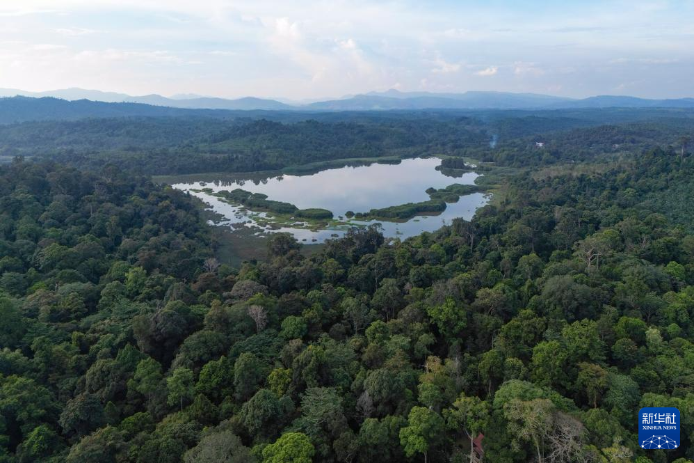 这是9月3日在马来西亚彭亨州拍摄的珍尼湖生物圈保护区景色(无人机照片)。
