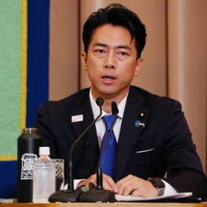 9月24日,在日本东京,日本自民党总裁选举候选人、农林水产大臣小泉进次郎在辩论会上发言。