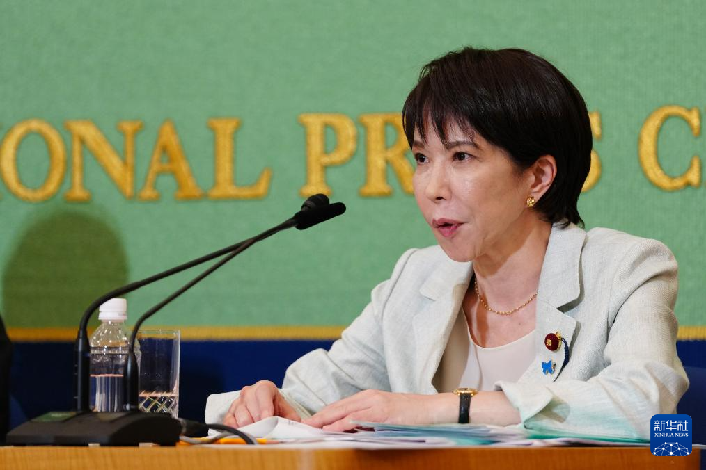 9月24日,在日本东京,日本自民党总裁选举候选人、前经济安全保障担当大臣高市早苗在辩论会上发言。
