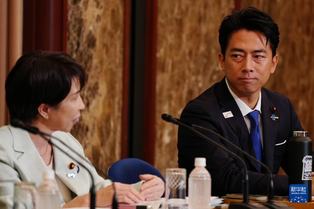9月24日,在日本东京,日本自民党总裁选举候选人小泉进次郎(右)和高市早苗在辩论会上。