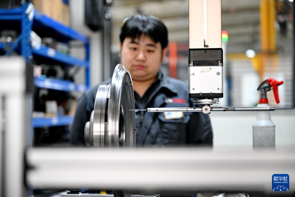 9月24日,泊头市亚奇铸业有限公司工人在产品检测室内工作。