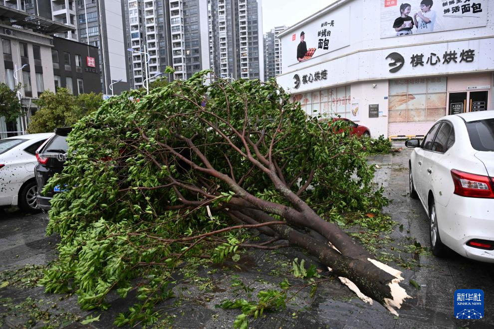 9月24日,在广东阳江市江城区横一路,被吹断的树砸在汽车上。
