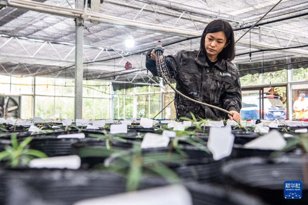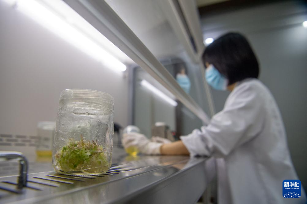 9月23日,在重庆金佛山国家级自然保护区管理事务中心,工作人员韦冠吾在实验室进行植物繁育实验。