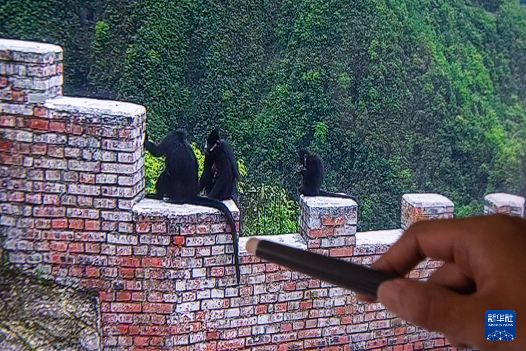 9月23日,在重庆金佛山国家级自然保护区管理事务中心,工作人员李新通过视频分析黑叶猴生活习性。