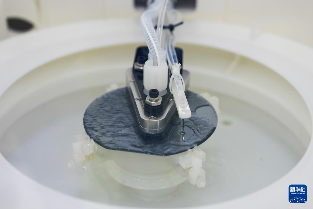 这是9月25日在上海交通大学无锡光子芯片研究院光子芯片中试线上拍摄的湿法工艺。