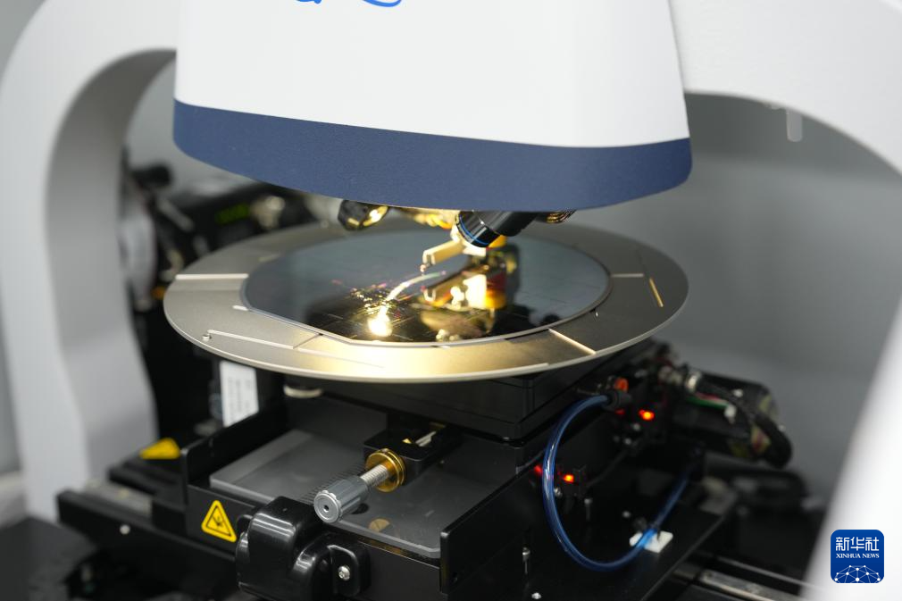 这是在上海交通大学无锡光子芯片研究院光子芯片中试线接受检测的芯片晶圆(9月25日摄)。