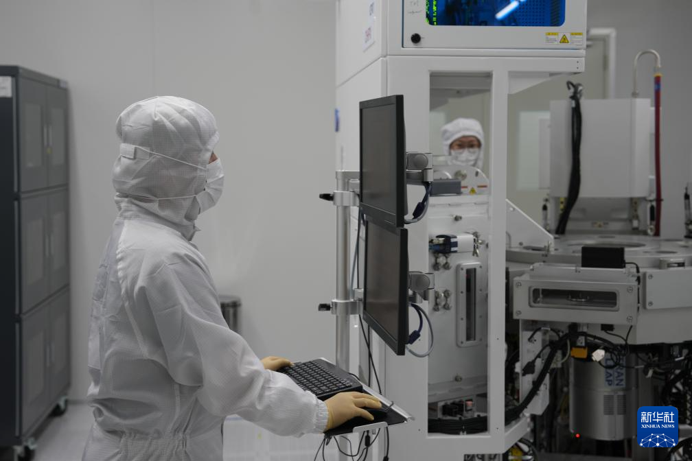 9月25日,工程师在上海交通大学无锡光子芯片研究院光子芯片中试线刻蚀间工作。