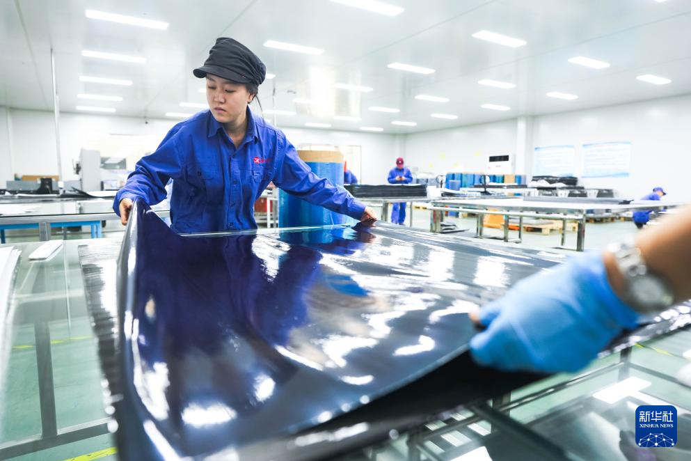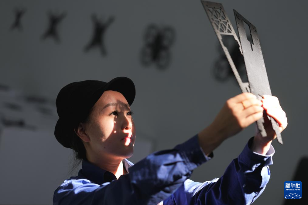 鲍雨彤在检查加工完成的碳纤维复材制件(9月17日摄)。
