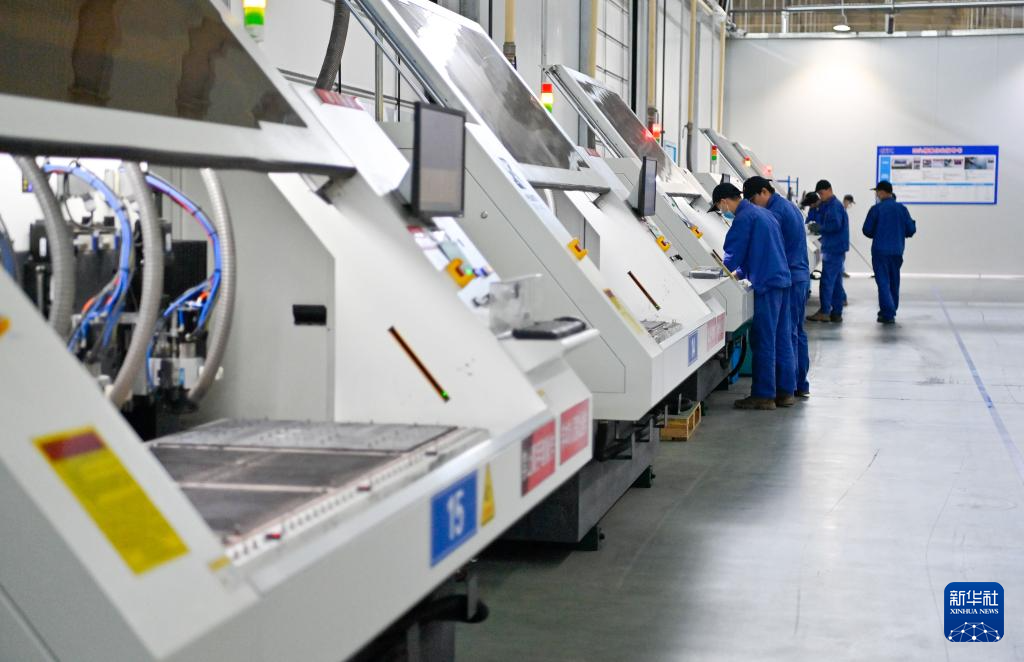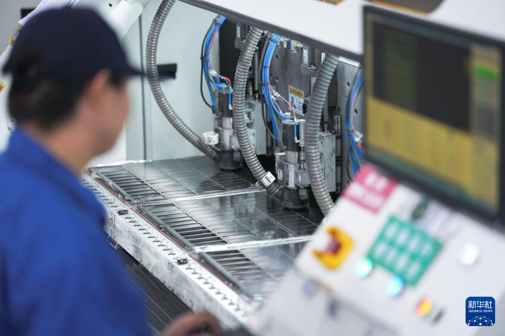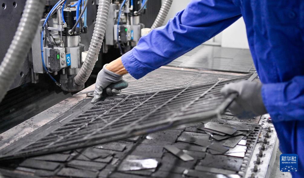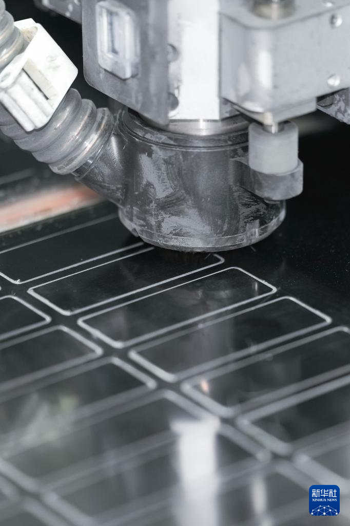 工作人员在吉林化纤集团国兴复材有限公司车间操控雕刻机加工碳纤维复材制件(9月17日摄)。