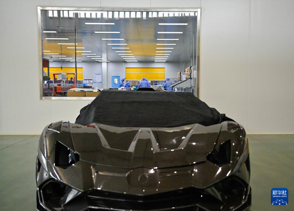 轻量化车间高级主管郑铎在检查碳纤维复材制件(9月17日摄)。